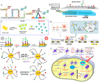 | Fig. 2. Walkers propelled by strand displacement reaction. (A) A bipedal DNA walker relying on toeholds-mediated strand displacement reaction. Reprinted with permission [35]. Copyright 2004, American Chemical Society. (B) A DNA-fueled and catalytic molecule machinery for monitoring under-expressed miRNAs in living cells. Reprinted with permission [51]. Copyright 2017, American Chemical Society. (C) A stochastic DNA walker based on catalytic hairpin assembly. Reprinted with permission [12]. Copyright 2015, Springer Nature Limited. (D) A processive walker depending on a surface-immobilized proximity catalytic hairpin assembly. Reprinted with permission [52]. Copyright 2017, American Chemical Society. | |