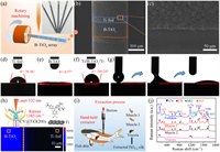 | Fig. 4. (a) Schematic diagram of the B-TiOx/Ti preparation process (Inset: real extracted B-TiOx/Ti). (b) SEM image of extracted B-TiOx/Ti microfiber and (c) partial enlarged detail of B-TiOx and Ti interface. The surface contact angle tests of the (d) Ti, (e) B-TiOx and (f) Ti/B-TiOx/Ti with the size of 1.0 mm2 for local B-TiOx nanostructure. (g) The contact angle of droplet dynamic process at the interface between Ti and B-TiOx. (h) Raman image of B-TiOx/Ti. (i) Schematic diagram of the extraction process by a hand-held extractor into polluted fish. (j) SERS spectra of the mixture containing distribution in the epidermis, muscle and viscera. | |