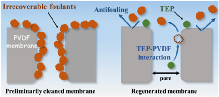 We firstly evaluated the effectiveness and mechanisms of the membrane regeneration strategy. Surface morphologies, filtration performance, surface functional groups and chemical composition of the membranes were identified. Real wastewater treatment performance and critical flux determination of the membranes were measured in a lab-MBR (membrane bioreactor). We further elaborated the mechanisms of how TEP solvent-based processing contributed to the achievement of performance recovery and EOL membrane regeneration. This study highlights in addressing the challenges associated with irrecoverable fouling removal and the sustainable recycling of membrane materials for wastewater treatment technology.