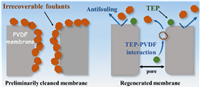 Herein, an eco-friendly strategy based on triethyl phosphate (TEP) solvent for regenerating EOL polyvinylidene fluoride (PVDF) membranes was selected. TEP possesses low toxicity compared to other traditional solvents [27,28], and has a good affinity with PVDF material as TEP has been used as the solvent to manufacture PVDF membranes [29–31]. Therefore, we hypothesize that incorporating TEP solvent-based processing in EOL membrane regeneration could potentially enable effective removal of recalcitrant irrecoverable foulants and restoration of membrane water permeance.