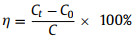 where V0 and C0 are the volume and concentration of the prepared cerium ion solution; V1 is the volume of the test solution; C1 is the residue cerium concentration calculated from the absorbance and standard curves.
