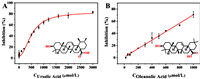 | Fig. 5. Relationship between inhibition rate and concentration of (A) ursolic acid and (B) oleanolic acid. | |