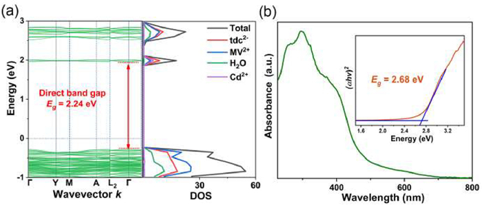 | Fig. 2. Electron structure of RCS-1: (a) Band structure and DOS. (b) UV–vis absorption spectrum; inset: The Tauc plot. | |