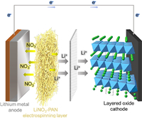 | Fig. 1. The schematic diagram of LiNO3-PAN es layer used as the interlayer of Li metal battery, which can continuously release LiNO3 to electrolyte to protect Li metal anode. | |