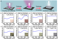 The simulated reflectance spectra were calculated with commercial finite-difference time-domain (FDTD) software (Lumerical) in simulations. The refractive index of ZnO was set as 1.7. In the case of couples of spheres, the perfectly matched layers (PMLs) were imposed in all of the directions as the boundary condition. In both cases, a plane wave was placed above the structure for a reflection spectral calculation.
