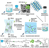 | Fig. 1. Schematic illustration of mechanically stretched α-CD pseudopolyrotaxane elastomers with reversible phosphorescence behavior. Reproduced with permission [6]. Copyright 2024, Wiley Publishing Group. | |