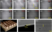| Fig. 3. (a-h) Bright-field imaging as a function of time. L-Ser was added to the mixed solution. (i) 3D schematic of the silicon template and size information. Sectional view (j) and large-area bright-field (k) images of the assembly after removal of the silicon template. (j) shows the dimensions of the width and height of the assembly. The solution is initially confined to the area denoted by the arrow in (c), and finally, the template is removed and assembled into the position indicated by the arrow in (k). | |