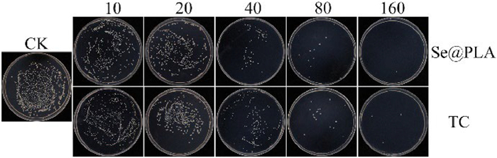 | Fig. 2. Colony growth inhibition of Se@PLA (µg/mL) and thiodiazole copper (TC) against Xoo. | |