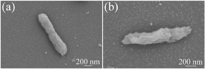 | Fig. 3. Morphologies of Xoo: (a) control and (b) treated by Se@PLA. | |