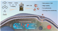 Hence, we aim to address the limitations of commercial probes, such as short excitation wavelengths and susceptibility to photobleaching, hindering long-term LDs monitoring. Our design focuses on key factors: first, recognizing the hydrophobic nature of LDs, we prioritize achieving appropriate amphiphilicity for effective LDs targeting. Second, we aim to enhance the conjugated core’s size and introduce N doping to reduce the highest occupied molecular orbital-lowest unoccupied molecular orbital (HOMO-LUMO) band gap, enabling a significant red-shift in fluorescence. Finally, the functional groups contained in the raw materials for the synthesis of CQDs are likely to be retained in the products. Therefore, we prepare red-emissive carbon quantum dot (R-CQDs) by mixing amino-rich p-phenylenediamine (p-PD), methyl-rich N,N-dimethylformamide (DMF) and 1,10-phenanthroline (phen) aiming to achieve significant solvatochromic effects, appropriate amphiphilicity and red-shifting fluorescence, and thus to realize LD-targeting for convenient wash-free LDs imaging, as well as reduced phototoxicity to associate long-term LDs monitoring. Afterwards, the new R-CQD probe is used for dynamic monitoring of LDs in various pathologies, including starvation and lipotoxicity, fully demonstrating the potential of R-CQD for LDs long-term monitoring (Scheme 1). Thus, the present work expands the application of CQDs as fluorescent probes and provides a reliable tool for studies related to the dynamic behavior of LDs under physiological and pathological conditions.