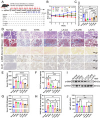 Taken together, these findings suggest that LA-PC has the capacity to efficiently break down the collagen barrier, infiltrate profoundly into the pancreatic tissue, and provide space for pancreatic repair. The targeting attribute endowed by the pPB peptide on LA-PC facilitates the accumulation of ATRA within PSCs, thereby enhancing the therapeutic efficacy of ATRA. Concurrently, the suppression of PDGFRβ by the pPB peptide also fosters the quiescence of PSCs and effectively curtails the advancement of pancreatic fibrosis.