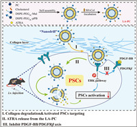 | Scheme 1. Schematic illustration of the construction, delivery and effect mechanism of PDGFRβ-targeting nano-system based on “nanodrill” strategy to induce PSCs quiescence from both intracellular and extracellular perspectives. | |
