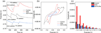 | Fig. 7. (a) Effect of adding H2O2 and TC on the circuit voltage of the solution in the presence of different reagents. (b) CV curves of different reagent solutions, (c) Effect of different reagents on the current measured by linear scanning voltammetry. | |