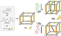 As typical porous crystalline materials, metal-organic frameworks (MOFs) constructed from metals and organic linkers have attracted great attention due to their tunable pores, beautiful structures, and potential applications [15-18]. MOFs can be both luminescent and chiral and are ideal materials for exploring CPL functions. MOFs may offer an elegant solution to overcome the challenge of trade-offs between PLQY and glum [19-21]. The strategies for obtaining CPL-active MOFs mainly involve decorating organic luminophores on chiral linkers and incorporating luminescent auxiliary ligands into the framework [22-28]. Although a series of CPL-active MOFs have been reported, the development of MOF materials with high CPL performance is still a big challenge [29,30].