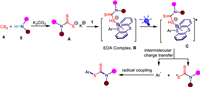In order to better understand the mechanism of this reaction, some preliminary experiments including radical trapping experiment, EDA complex determination, and 1H NMR titration experiments by Yang and co-workers. As shown in Scheme 4, dithiocarbamate anion A is obtained through nucleophilic addition reaction between carbon disulfide 4 and amines 5 in the presence of K2CO3. Then, the electron-poor aryl thianthrenium salt 1 and the electron-rich dithiocarbamate anion A associates to generate an EDA complex B. Upon irradiation with visible-light, a SET (single electron transfer) transformation from A to 1delivers a thiyl radical E and an aryl radical D. Finally, the thiyl radical E couples with aryl radical D, affording the desired product 6.