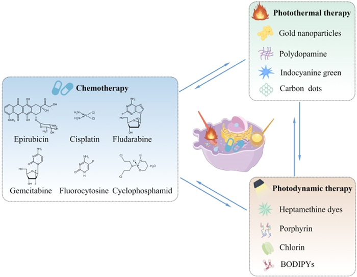 Despite the remarkable achievements in the understanding of cancer and the great advances in the treatment of cancer, cancer remains a huge threat to human health and life, leading to more than 9.9 million deaths worldwide in 2020 [1]. There are three main strategies for systemic treatment of cancer, including chemotherapy, targeted therapy, and cancer immunotherapy. Chemotherapy is still the predominantly used modality for almost all types of cancers at different stages [2]. However, challenges including poor tumor targeting, systemic serious adverse reactions, chemotherapy resistance, and the limited therapeutic efficacy of monotherapy modality have limited its further development [3-5]. To address these challenges, multimodal combination cancer therapy has emerged and has demonstrated significant potential in enhancing the effectiveness and security of chemotherapeutic strategies [6,7].