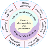 3.1. Unidirectional external magnetic field regulationThrough some methods, the original catalyst can be transformed into a ferromagnetic catalyst, and under the condition of an external magnetic field, the parallel spin arrangement of O atoms can be achieved, thus reducing the reaction barrier, optimizing the hysteresis kinetics of the reaction, accelerating the related adsorption and desorption process, leading a positive impact on the performance of OER.