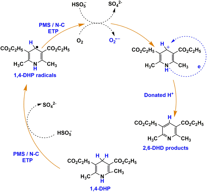 | Fig. 5. Proposed mechanism of PMS activation for the selective oxidation of 1,4-DHP. | |