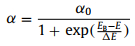 To analyze the localization states, the absorption edge including the effects of broadening could be described by fitting the rising edge (α) and plateau of the absorption (α0) [52]: