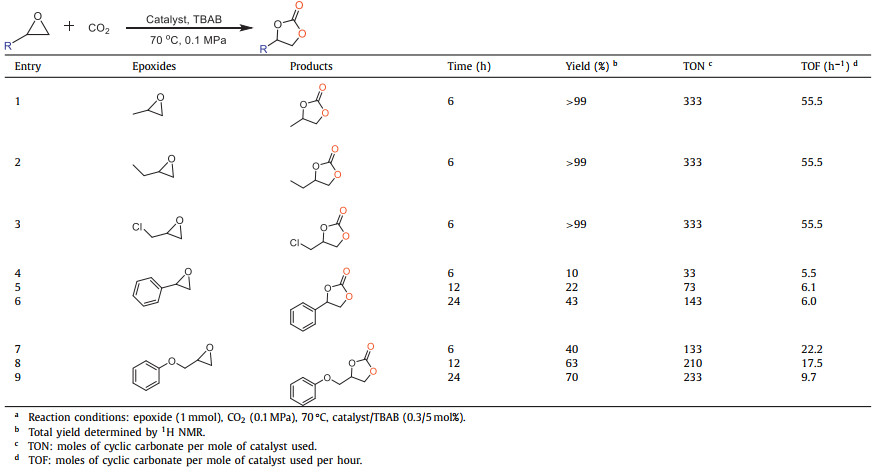 Table 1 Synthesis of various cyclic carbonates from CO2 and epoxides.a |