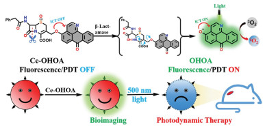 | Scheme 1. Illustration of Ce-OHOA for selective imaging and photodynamic antibacterial. | |