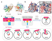 | Fig. 1. (a) The location of catalytic Ser232 in hNotum (PDB ID: 6ZYF). (b) The distribution of ionizability and arginine residues on the surface of hNotum (PDB ID: 6ZYF). Three basic arginine residues are surrounding catalytic Ser232. (c) A design concept of "T-shaped" Cy7 esters as new generation optical substrates for highly selective sensing hNotum, the shape of enzyme active cavity was portrayed according to the published crystal structure. | |