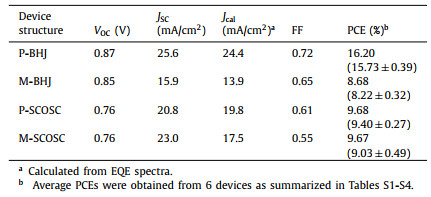 Table 1 Photovoltaic parameters of the optimized P-/M-OSCs based on PM6:L8-BO or as-DCPIC as the photoactive layers. |