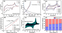 | Fig. 6. (a) Volt-ampere cycling curves and (b) the capacity voltage curves of IO-TS-2. (c) Cyclic voltammetry test of IO-TS-2 at different sweep speed and (d) corresponding peak current versus square root of scan rates. (e) Pseudocapacitance contribution of IO-TS-2 at 0.2 mV/s. (f) Histogram of pseudocapacitance contribution at different scan rates. | |