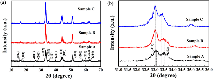| Fig. 1. (a) XRD patterns of samples with different synthesis conditions. (b) The magnified NiFe2Se4 nanostructures (112) and (202) peak. | |