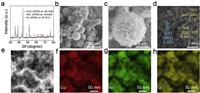 | Fig. 1. (a) XRD pattern, (b, c) SEM imagines, (d) HRTEM image, (e–h) TEM elemental mapping images of CuO/NiO. | |