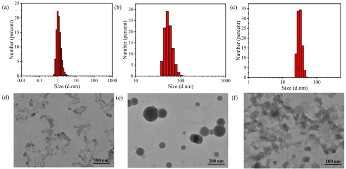 | Fig. 6. The DLS and TEM images of O1·4PF6 in acetonitrile (a, d), with the addition of 10.0 equiv. ATP (b, e) and in water (c, f). | |