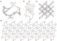| Fig. 2. The single-crystal X-ray structures of (a) O1·4PF6 and (b) weak intermolecular interactions between molecules. Illustration of the packing of O1·4PF6 along the (c) a-axis and (d) b-axis. Color code: C, gray; N, blue; B, pink. For clarity, all hydrogen atoms, counterions, and solvent molecules are omitted. | |