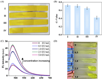 | Fig. 2. Feasibility of the D-LAF sensor for endotoxin detection. (A) The photograph and (B) the Cr values of the sensor in BET water (I), endotoxin solution with 5 EU/mL (II), TAL solution (III), and the mixture of endotoxin and TAL after incubation for 1 h (IV), respectively. (C) The fluorescent intensity of thioflavin T in TAL reagents solutions with different concentrations of endotoxin (λex = 440 nm). (D) The photograph of TAL reagents mixed with different concentrations of endotoxin. | |