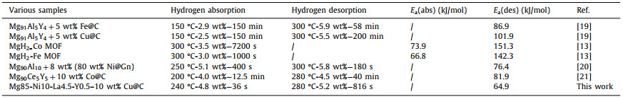 Table 1 Comparison of the hydrogen storage property of magnesium alloy doping with different catalysts. |
