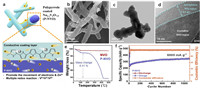 | Fig. 2. (a) Schematic illustration of the P-NVO cathode for AZIBs; (b) SEM, (c, d) TEM images of P-NVO; (e) TGA curves comparing NVO and P-NVO; (f) Cycling performance of P-NVO at a current density of 6000 mA/g. Adapted with permission [62]. Copyright 2022, Elsevier. | |