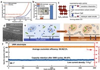 | Fig. 6. (a) Anodic ESW. (b) Elemental analysis of dissolved vanadium ions in the electrolyte after the 1st cycle (inset: photos of the separator). (c) Proposed degradation mechanism of the V6O13 cathode and the effects of UWA electrolyte on cathode stability. (d) CEI structure on V6O13 cathode interphase in UWA electrolyte after 10 cycles. (e) Schematic of vanadium dissolution and CEI formation in UWA electrolyte. (f) Cycling performance at 1 A/g. Adapted with permission [75]. Copyright 2022, Elsevier. | |