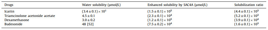Table 1 Solubilization effect of SAC4A on various drugs. |