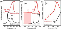 | Fig. 3. (a) H2-TPR, (b) soot-TPR, and (c) enlarged soot-TPR curves of the Cs/Co/Ce-Sn-750 and Cs/Co/Ce-Sn-500 catalysts. | |