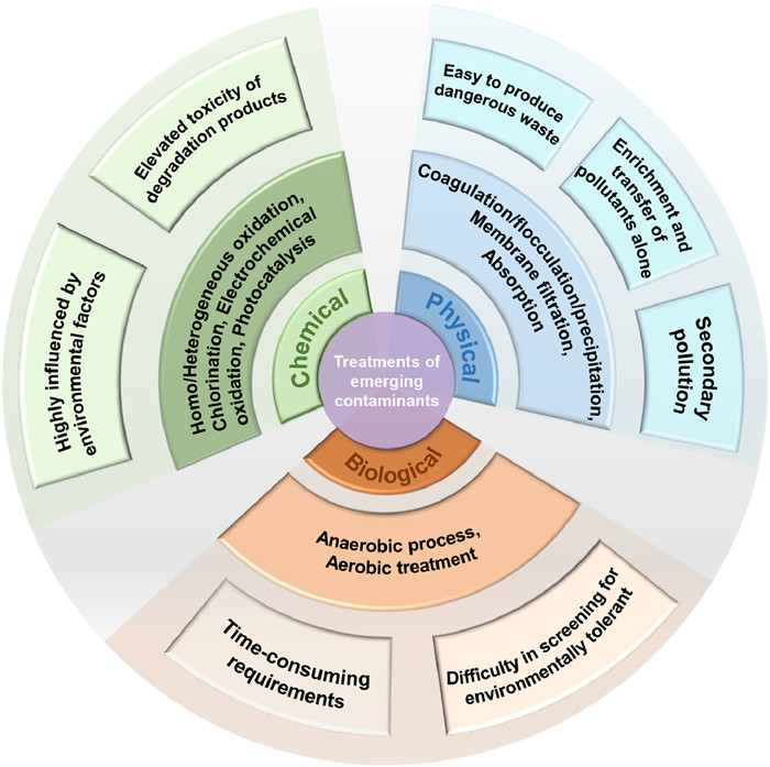 The distinguishing aspect of “emerging” in emerging contaminants (ECs) lies not merely in their novelty of synthesis but rather in their recent discovery or heightened recognition due to their potential ecological and human health threats. Regrettably, prevailing pollution treatment and environmental management paradigms frequently disregard ECs, resulting in a failure to mitigate associated environmental hazards [1,2]. The ECs commanding global attention primarily encompass endocrine disrupting chemicals (EDCs), persistent organic pollutants (POPs), antibiotics, and microplastics. In contrast to conventional pollutants, ECs exhibit a spectrum of characteristics-diverse in type, pervasive in origin, resistant to degradation, prone to ecosystem accumulation, and marked by enduring persistence in the environment and organisms. These inherent traits underscore the potential ecological health risks they pose [3-5].