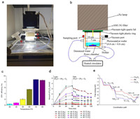 The performance of GaN NWs photocatalyst can be impacted by temperature, therefore a specific and appropriate temperature is necessary for the optimal operation of GaN NWs photocatalytic system [92-94]. In photocatalytic OWS, the hydrogen and oxygen evolution reaction usually compete with the hydrogen–oxygen recombination, but hydrogen–oxygen recombination is a decisive factor affecting the maximum STH efficiency [95-97]. Generally, increasing the reaction temperature promotes the rate of catalytic reaction, whereas the hydroxide–oxygen recombination reaction is also enhanced with the temperature elevation. Zhou et al. designed a temperature-dependent experiment and achieved a 9.2% of STH efficiency, which is the highest value ever reported for GaN NWs photocatalytic overall pure water splitting [65]. The designed temperature-controlled photocatalytic system and its schematic illustration are shown in Figs. 6a and b. A 300 W Xe lamp with an AM1.5G filter is mounted on a Pyrex chamber with deionized water. The chamber is pumped to vacuum, and temperature-controlled photocatalysis is performed using a bilayer chamber with circulating water provided by a PolyScience 7L heating circulator to control the temperature of the reaction chamber. Overall pure water splitting is achieved using polymerized simulated sunlight at different temperatures from 30 ℃ to 80 ℃. As shown in Fig. 6c, obviously, the STH efficiency of GaN/InGaN NWs modified with Rh/Cr2O3 and Co3O4 shows a significant dependence on temperature. From 30 ℃ to 70 ℃, the STH efficiency increases significantly as the temperature rises, reaching a maximum at 70 ℃. However, when the temperature is further increased to 80 ℃, the STH efficiency decreases. This suggests that an appropriate temperature is an important factor in determining the STH efficiency of photocatalytic OWS on InGaN/GaN NWs.