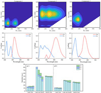 | Fig. 4. Spectral characteristics of the three components (C1-3) PARAFAC modeling of PE MPs dissolved products. Histogram of DOM content at different treatment dissolved products and different reaction stages was analyzed by EEM-PARAFAC. In each set of histograms, four columns stand for 30 d, 180 d, 360 d, and 720 d from left to right, respectively. | |