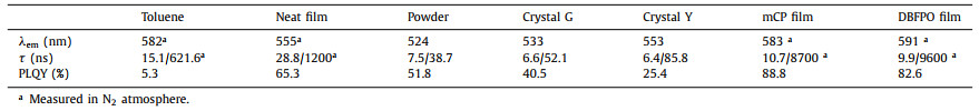Table 1 Photophysical data of Trz-mCzCbCz in different states at room temperature. |