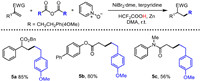 Fortunately, the nickel catalyzed hydroalkylation of conjugated olefins has also been successfully achieved under simply modified conditions. Monosubstituted and disubstituted alkyl esters were amenable, giving the desired hydroalkylative products 5a and 5b in good yields. Enamide derivative 5c could also be obtained in 56% yield (Scheme 4).