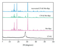| Fig. 2. XRD images of CN-K, Mo-Bpy and CN-K/Mo-Bpy (fresh and recovered). | |