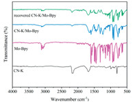 | Fig. 6. FT-IR spectra of CN-K, Mo-Bpy and CN-K/Mo-Bpy (fresh and recovered). | |