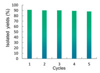 | Fig. 8. Stability and recycling of CN-K/Mo-Bpy for the synthesis of 3a. | |