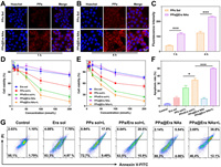 | Fig. 3. Cellular uptake and in vitro antitumor effect of supramolecular hybrid nanoassemblies. (A, B) Cellular uptake of 4T1 cells by confocal microscopy at 1 and 4 h. Scale bar: 10 µm. (C) Quantitative analysis of cellular fluorescence intensity by flow cytometry. (D) Synergistic cytotoxicity of various formulations against 4T1 cells with/without laser irradiation (660 nm, 50 mW/cm2, 5 min). (E) Synergistic cytotoxicity of various formulations against CT26 cells with/without laser irradiation (660 nm, 50 mW/cm2, 5 min). (F, G) Annexin V/PI analysis of 4T1 cells incubated with different formulations, with or without 660 nm laser irradiation (660 nm, 50 mW/cm2, 5 min). *P < 0.05, ***P < 0.001. Data are presented as mean ± SD (n = 3). | |