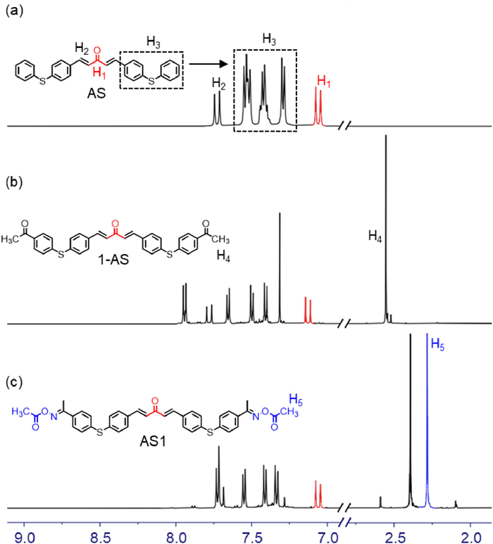 | Fig. 2. 1H NMR spectra of (a) AS, (b) 1-AS and (c) AS1 (500 MHz, CDCl3, 298 K). | |