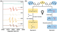 | Fig. 5. (a) EPR spectra of the radicals captured by PBN in DMF under exposure to LED@365 nm. Light intensity is 100 mW/cm2. (b) Proposed radical generation mechanism of AS1. | |