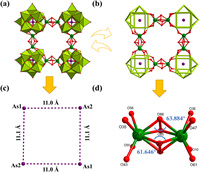 | Fig. 1. (a) The ball-and-stick/polyhedral exhibition of 1. (b) A simplified pattern of 1. (c) The position and distance of four As atoms in the structure of 1. (d) The ball and stick exhibition of {Zr2}. | |